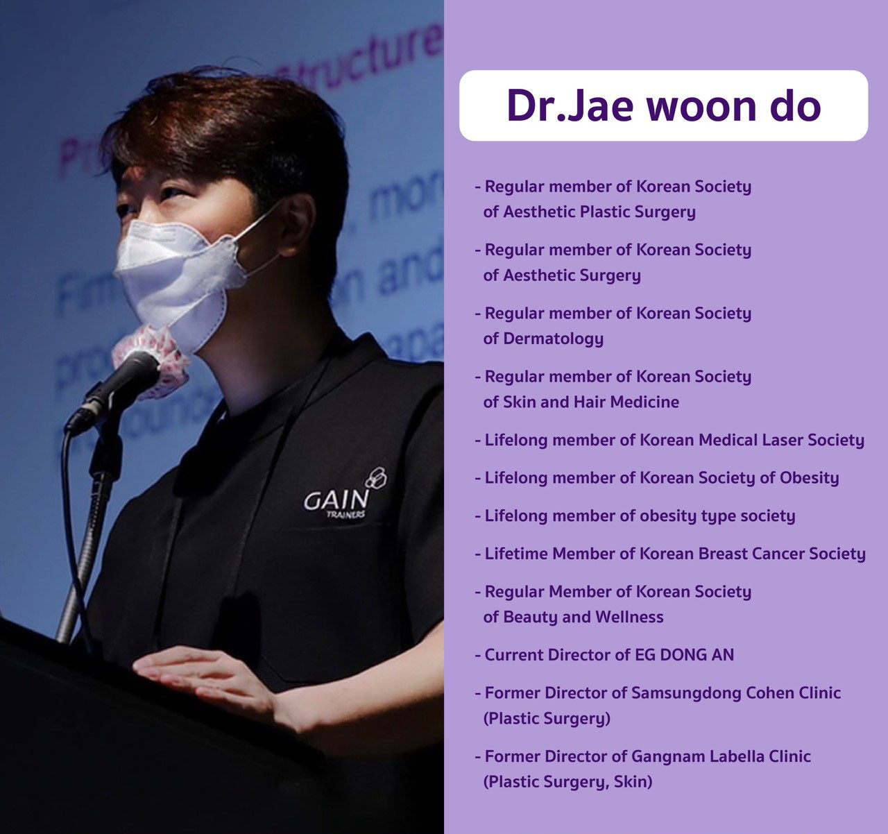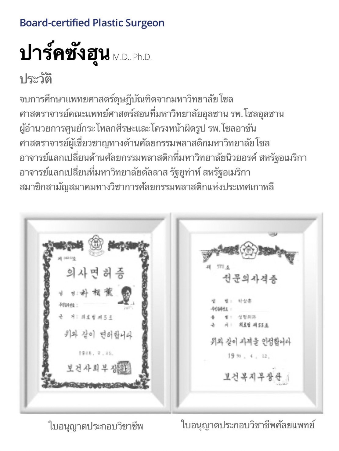 - สมาชิกของสมาคมศัลยกรรมวิชาการศัลยกรรมพลาสติกเฉพาะทางศัลยกรรมด้านริ้วรอยแห่งประเทศเกาหลี