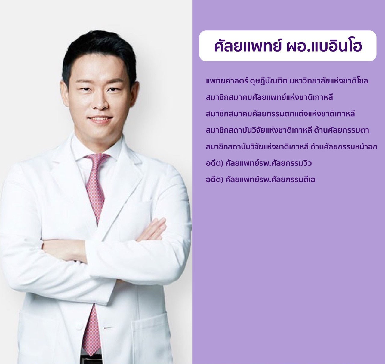 - เชี่ยวชาญ ศัลยกรรมตา / ศัลยกรรมจมูก / ฉีดไขมัน / ศัลยกรรมชะลอวัย / โบท็อกซ์ / ฟีลเลอร์