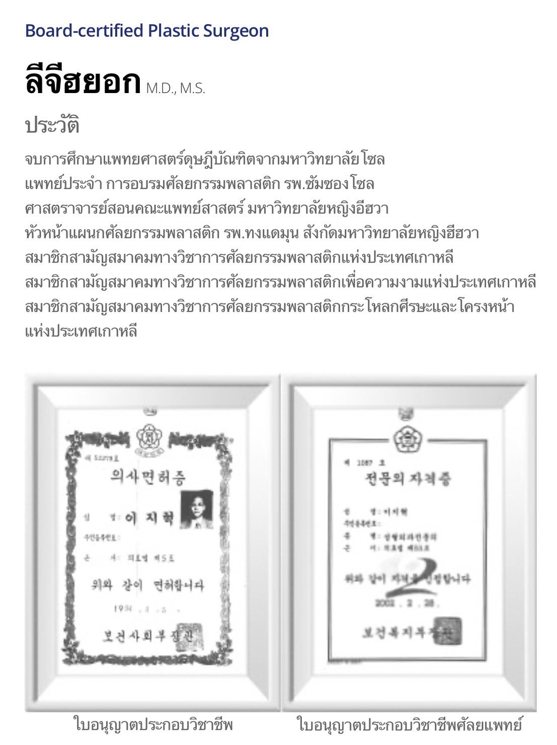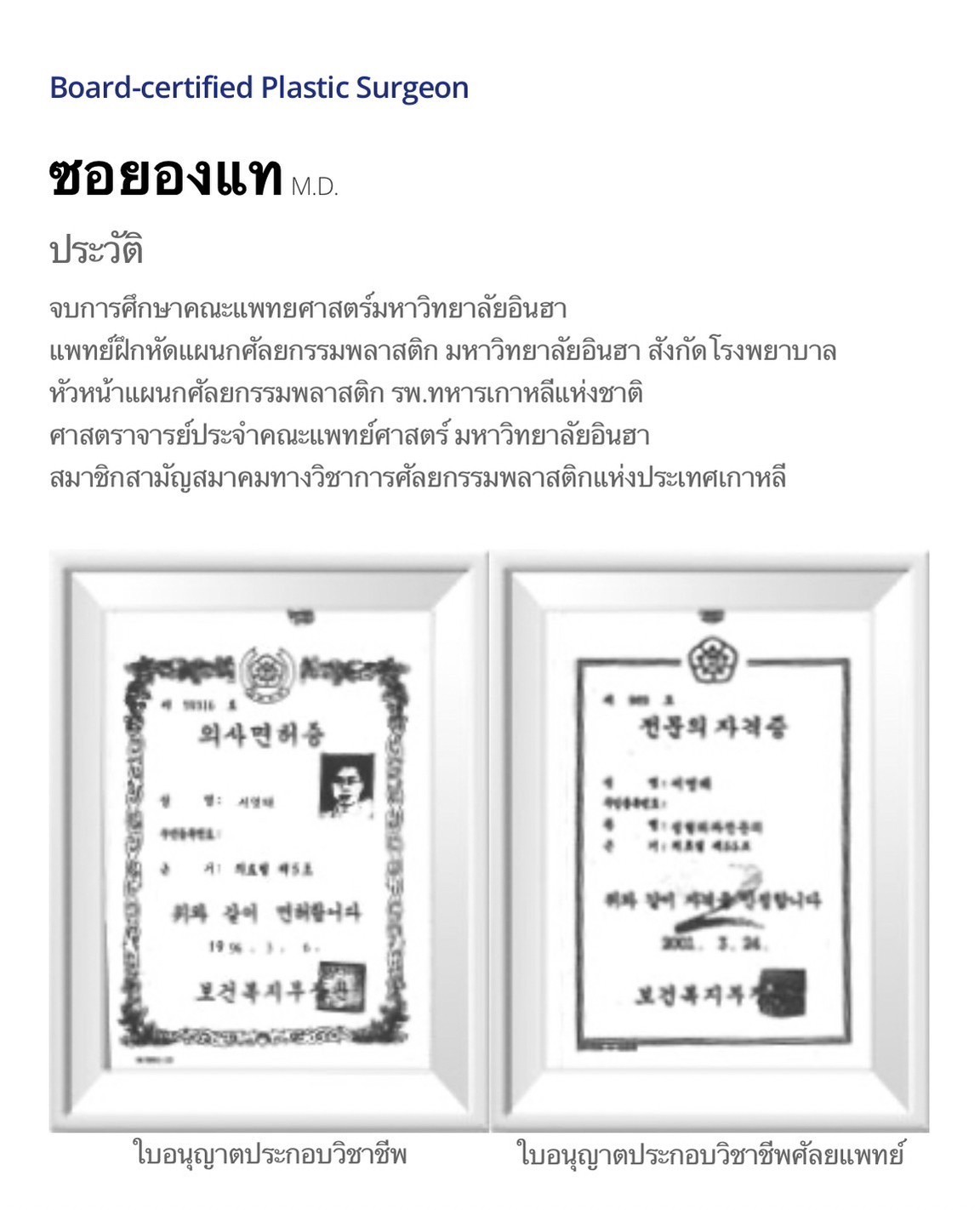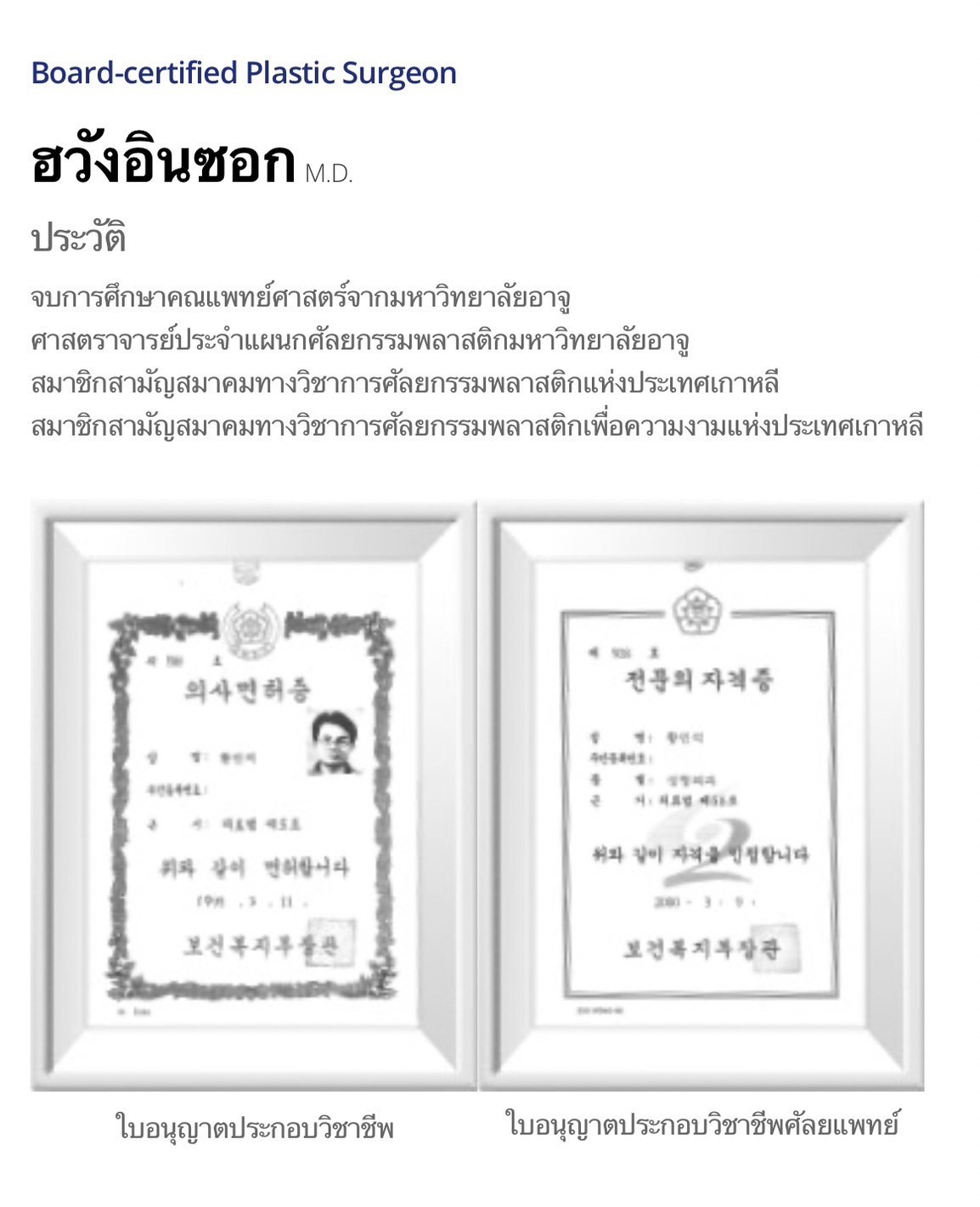 - สมาชิกสมาคม ศัลยกรรมพลาสติกความงาม แห่งประเทศเกาหลี